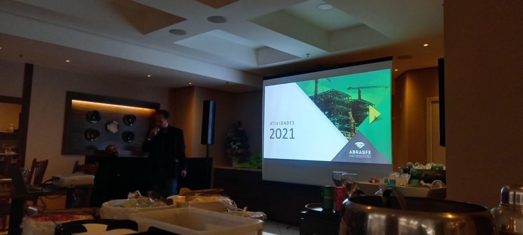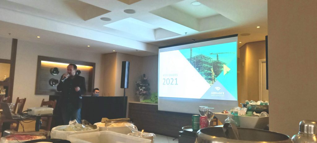 Em seguida, o Head de Operações da ABRASFE, Engº Pandolfo, apresentou as Atividades de 2021, a previsão de Atividades para 2022, e ainda abordou um tema bastante atual sobre ESG (Environmental, Social and Governance) – Benefícios do ESG na construção civil.