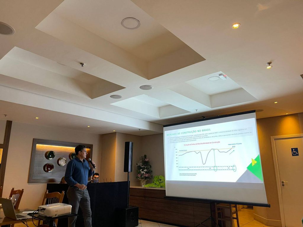 O Presidente da Associação, Ricardo Gusmão, iniciou a apresentação dando as boas-vindas aos participantes pelo 1º Encontro Anual Pós Pandemia. Falou também sobre as perspectivas econômicas e setoriais do mercado da construção civil no Brasil.