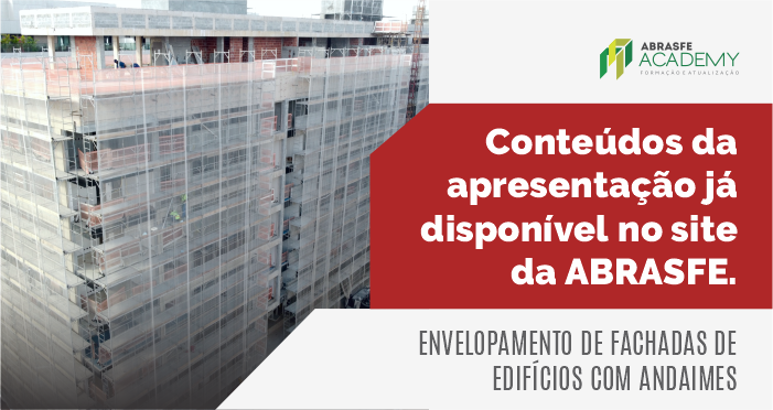 Ocorreu em 14.02.2023 a LIVE ABRASFE ACADEMY com o tema: “Envelopamento de fachadas de edifícios com andaimes” ministrada por Eng.º Carlos Bobbio.