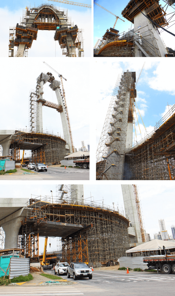 A estrutura principal é formada por 2 mastros de seção variável, unidos a uma altura de 100 metros, formando o Arco, que é executado com o Sistema Autotrepante ATR, sistema eficaz e que proporciona segurança operacional para equipe. A sua eficácia ocorre pelo fato de que não precisa utilizar grua para sua movimentação, a mesma acontece com o apoio de sistema hidráulico.