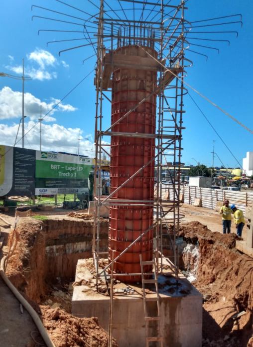 Imagem 2: Execução dos pilares com formas circulares e escoramento das travessas.