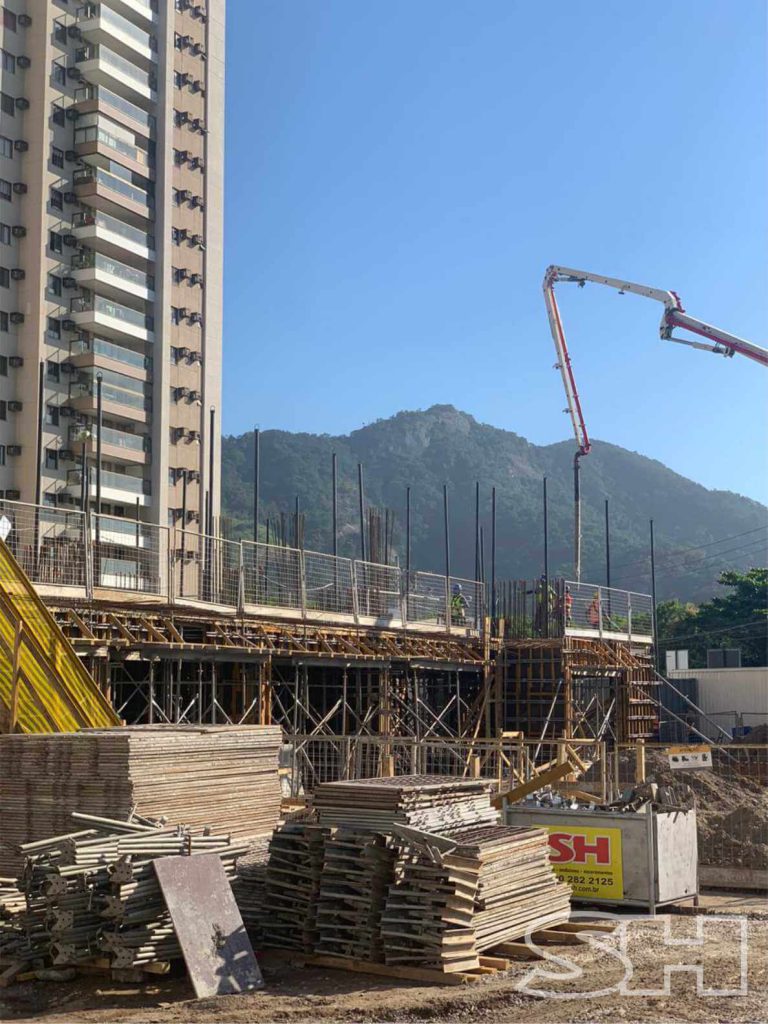 Para a execução desse projeto foram utilizados os seguintes equipamentos da SH: Formas Concreform SH® para a fundação (blocos), escoramento de Lajes e Vigas, travamentos de Pilares e Vigas, e Escoras SH® para reescoramento, além de Andaime Modex® SH para auxiliar na concretagem dos pilares.