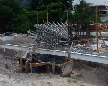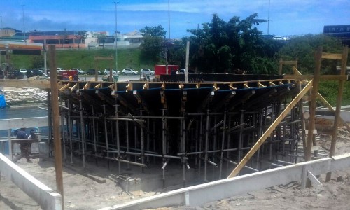 Para atender as demandas técnicas do projeto, foi utilizado o Sistema TIPFlex de Escoramentos Metálicos composto de Bases tubulares, Forcados Reguláveis de alta capacidade de carga, mais vigamentos metálicos principal de 4” (Vigas T4) e secundário em Vigas de 3” (T3) com enchimento de madeira para fixação dos pregos, com complementos do Sistema de Tubos e Braçadeiras posicionados estrategicamente para garantir a estabilidade e a resistência dos ângulos exigidos para a estrutura.