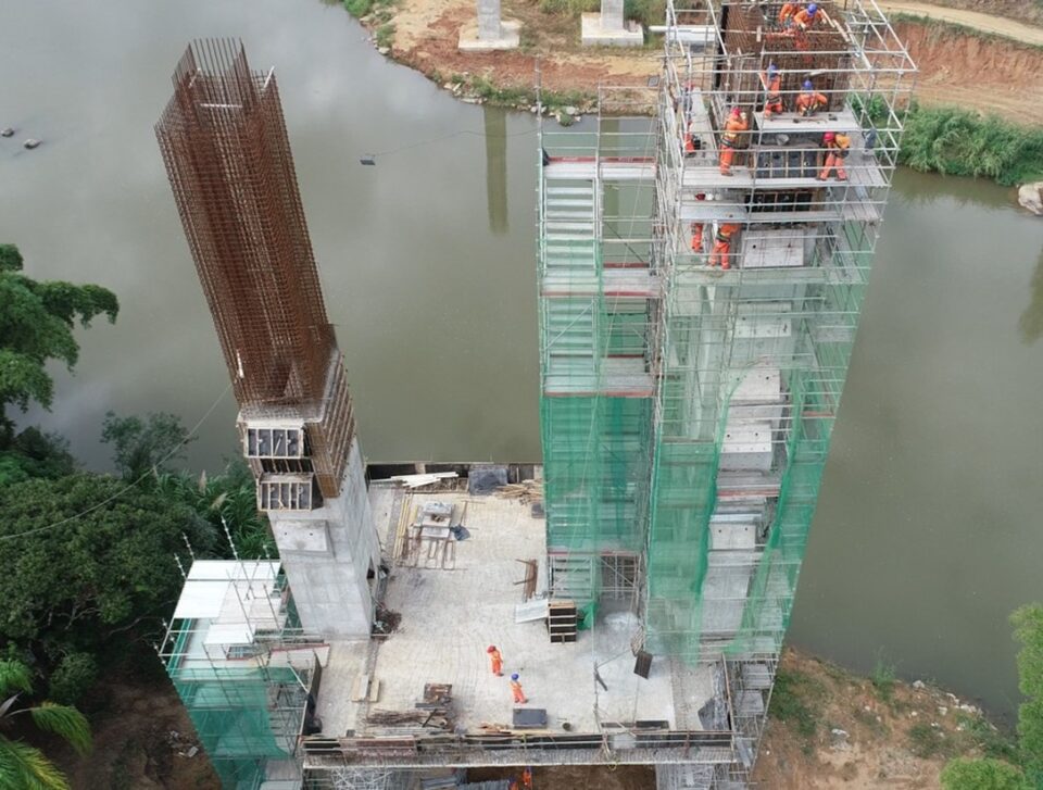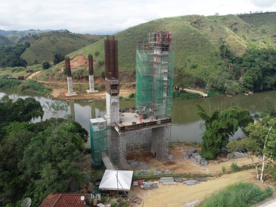 Obra em execução, sobre Rio Ribeira do Iguape  interligação entre os  municípios de Itaoca-SP e Adrianópolis-PR, para melhoria do sistema de transporte entre as cidades;  hoje executado por meio de balsa de acionamento manual.