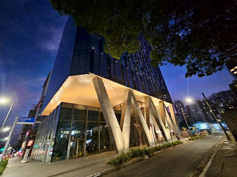 Com uma estrutura consideravelmente pesada, devido ao grande vão livre protendido acima do térreo, com três mezaninos e um quarto pavimento de alta complexidade, o projeto executado pela Construtora Porto Ferraz possuía vários desafios técnicos em fôrmas e escoramentos, pois, além da necessidade do alto volume de escoramentos para vencer o PD = 13,09 m, seus pilares inclinados foram idealizados em formato de “W”, contando com acaba- mento facetado de forma contínua e com variação de seção em todas as suas direções.
